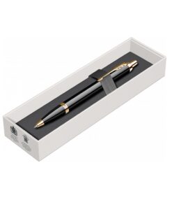 Hemijska olovka PARKER Royal IM Black GT Pakovanje sadrži: Hemijsku olovku. Refil (minu) za hemijsku olovku – u plavoj boji, debljina traga 1mm – M (medium). Originalna poklon kutija. Međunarodna garancija od 2 godine i uputstvo za upotrebu. Dimenzija hemijske olovke: Dužina: 137.00mm / Širina: 12.00mm / Težina: 23.40g