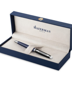 Hemijska olovka WATERMAN Hemisphere Black-Blue CT Pakovanje sadrži: Hemijsku olovku. Originalni Waterman refil u plavoj boji. Originalna poklon kutija. Dimenzija zatvorene olovke: Dužina: 132.00mm / Širina: 10.00mm / Težina: 26g * Rezervnu minu za hemijsku olovku možete kupiti u plavoj ili crnoj boji mastila – Refili za hemijske olovke Olovke sa karakterom, spoj smelog pariskog stila, spremnog za akciju u bilo kom trenutku i klasične jednostavnosti koju pružaju meke zakrivljene linije i uski oblik sveće. Hemisphfere će Vas izdvojiti iz gomile kroz eleganciju opšteg izgleda i smeli pristup u rasponu boja, metalik efektima ili lakiranim akcentima. Uz povećanu pažnju posvećenu jednostavnosti linija i prefinjenosti detalja, čist dizajn i dinamična kombinacija plemenitih materijala učiniće pisanje inspirativnom estetskom vežbom. Savršeno izbalansirani, neupadljivi, ali sa posebnom notom naglašenom dobro usklađenim finim dodacima, instrumenti ovog raspona biće primećeni u svim okolnostima.