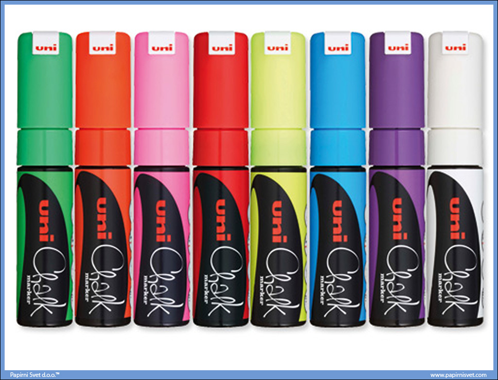 Uni, ljudi koji su stvorili Posca Markere, imaju novu oklovku na trzistu u vidu markera- tecne krede.Iako vec postoje brojni markeri od tecne krede na trzistu, ovo je prvi na koji sam naisao da nudi ovako snazne boje. Otporan je na nehotimicno brisanje, i veoma je dobrog kvaliteta sto se tice traga pisanja i tackanja po kome je Posca poznata. Kako bi ga uklonili, potrebna vam je vlazna krpa, a ne samo trljanje prstima, i uz pomoc vode i trenja sa mrvicu ulozenog truda mozete izbrisati trag ovog markera. Pigmenti su bogati, sto sam i ocekivao od Uni-ja. Boje su zive a debljina linije pisanja ce ogovoriti najvecem broju potreba.