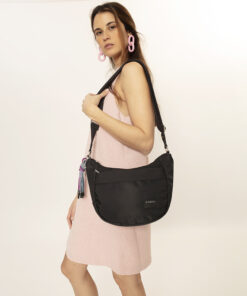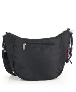 Ženska tašna Aroa je torba srednje veličine sa modernnim dizajnom. Pored glavne prostrane pregrade, sa bočne strane se nalazi dodatni zip, čijim otvaranjem dobijate za 4 cm veći unutrašnji prostor. Sa prednje strane se nalazi džep, idealan za mobilni telefon ili ključeve. Unutrašnji džep garantuje bezbednost vaših sitnica. Poseduje i podesiv kaiš sa zanimljivim priveskomm, tako da može da se nosi preko ramena ili crossbody,pružajući praktičnost i udobnost. Izradjena od kvalitetnog PVC free materijala.